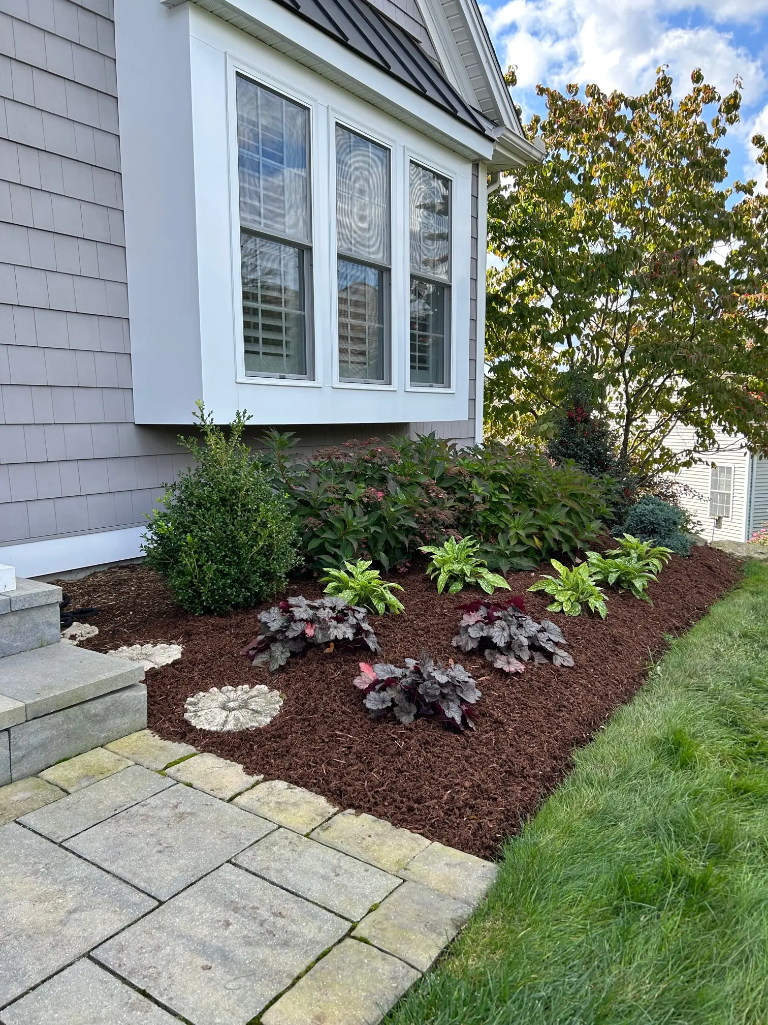 The number one problem we fix in existing landscapes is overgrown shrubs. In most cases, the original plantings were either the wrong variety for the available space or were installed too close together and too close to the house. We select shrubs based on mature dimensions, and space them to allow healthy growth. This prevents the overgrown, neglected look.
